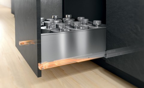Le nouveau système Légrabox se distingue par un design épuré et un confort d'utilisation particulièrement élevé. Ses côtés d'une étonnante finesse de 12,8 mm s'intégreront parfaitement dans chaque meuble.