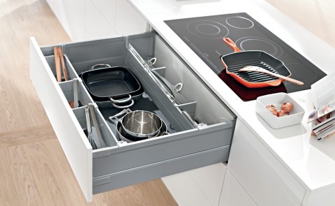 Les aides à l’ouverture les plus diverses peuvent être combinées à volonté. SERVO-DRIVE, l’aide électrique à l’ouverture en combinaison avec BLUMOTION, pour une fermeture silencieuse, ou TIP-ON, l’aide mécanique à l’ouverture. En plus de toutes ces qualité, Tandembox Antaro s'installe facilement sans outil en quelques gestes!
